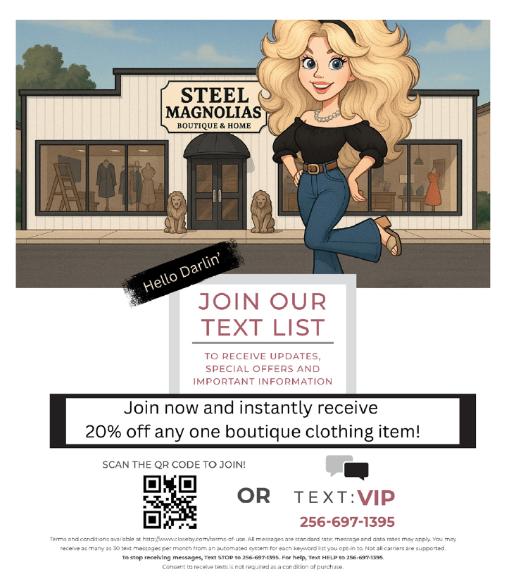 Steel Magnolias Boutique & Home is a charming furniture store located in Madison, AL, that has been serving the greater surrounding area since 2025. Our curated collection features a delightful array of furniture, clothing, home decor, candles, wall art, vintage goods, jewelry, gifts, and local honey. Specializing in unique pieces that blend modern style with southern charm, our boutique offers a welcoming shopping experience for all. In addition to our diverse selection, we provide delivery services and gift cards for a seamless shopping experience. Visit Steel Magnolias Boutique & Home to find the perfect piece to add flair and elegance to your home.